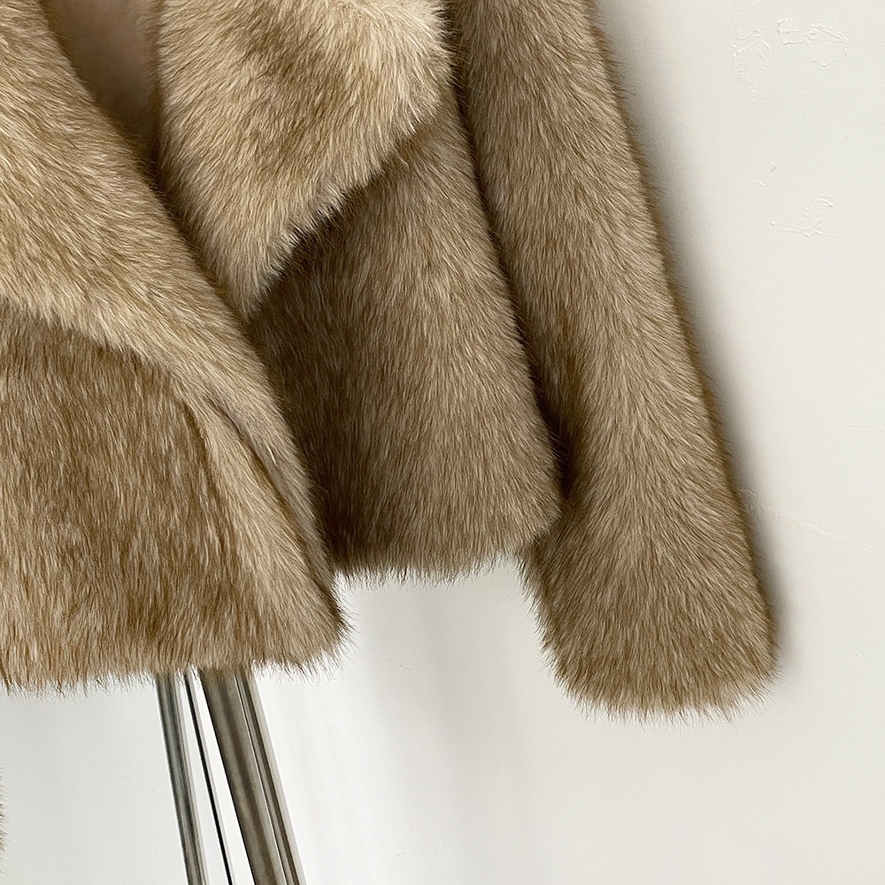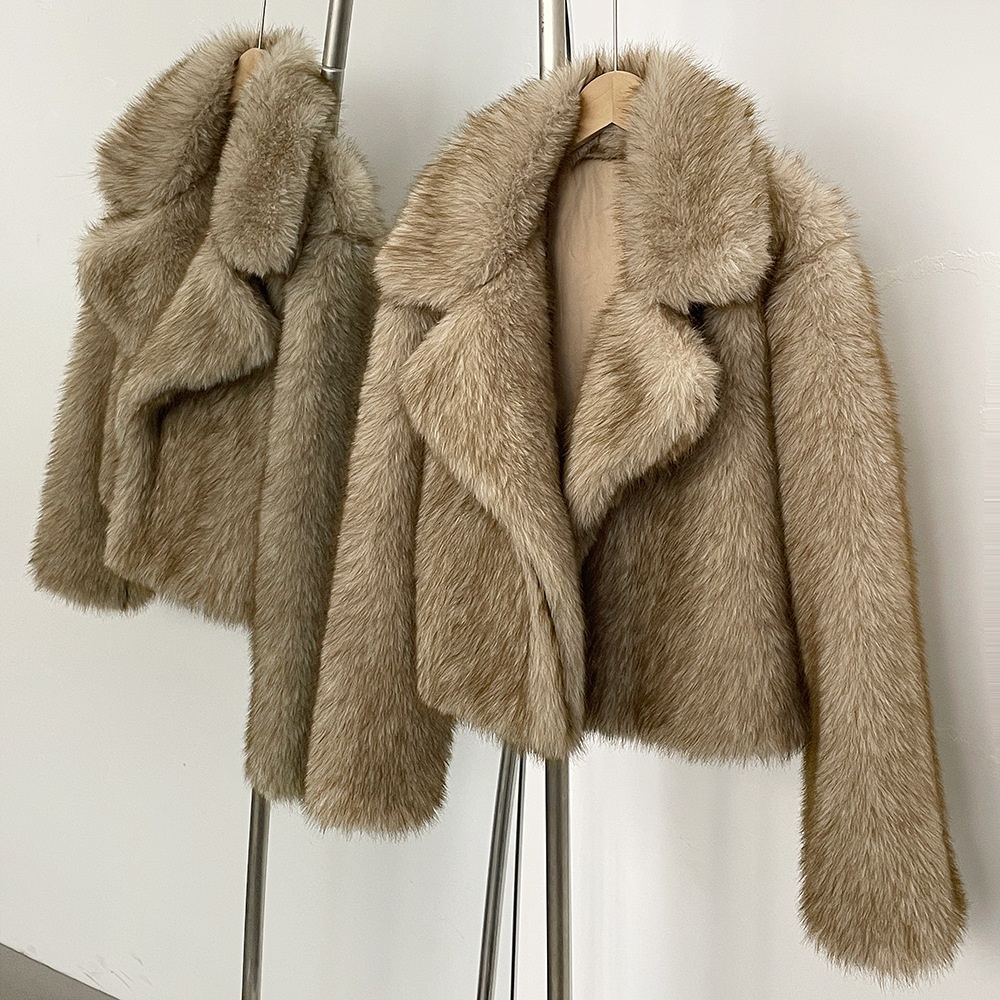 Stylish Short Winter Coat With A Suit Collar And Faux Fur Trim